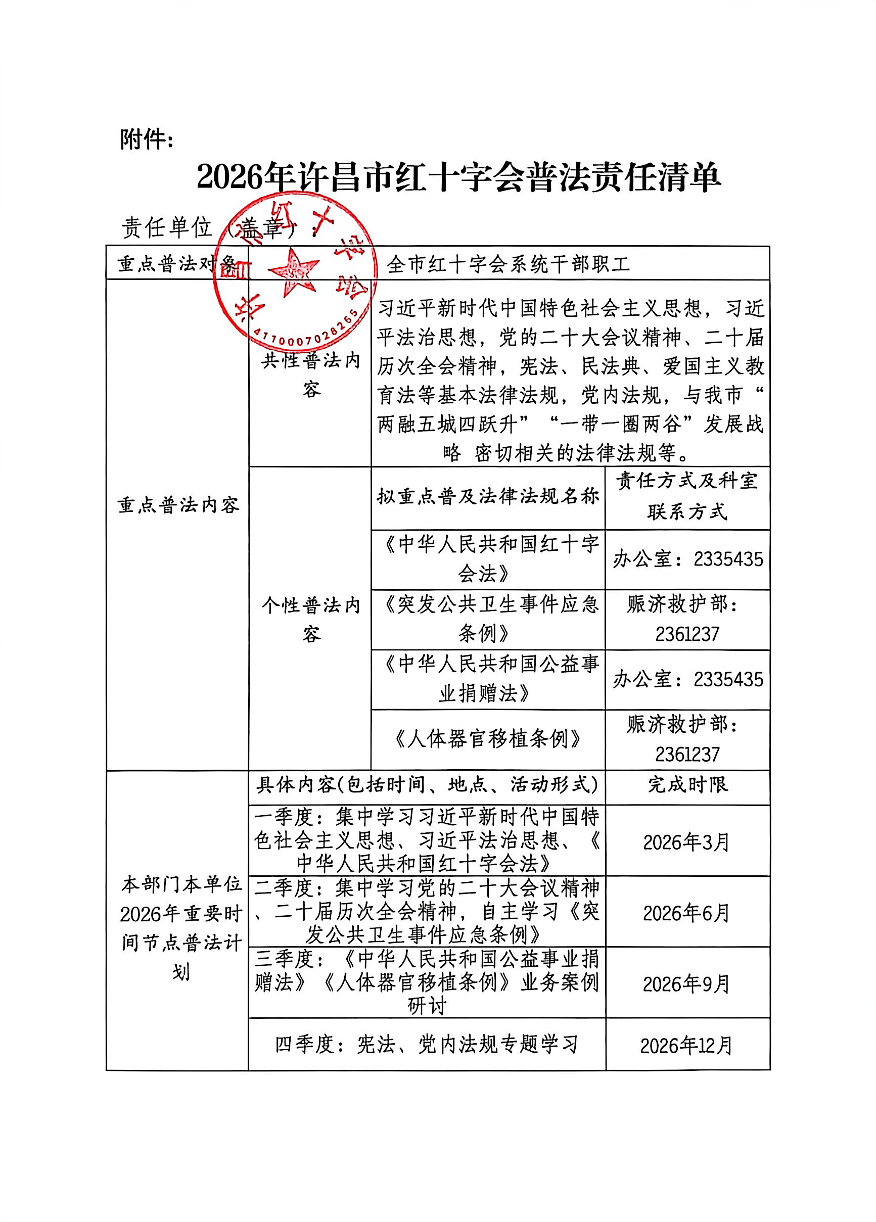 2026年许昌市红十字会普法责任清单