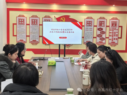 为进一步提升许昌市红十字系统业务能力,规范核心工作流程,凝聚县(市、区)红十字会工作合力,许昌市红十字会于12月25日组织召开全市红十字系统工作推进会暨业务培训班。本次会议针对天使基金操作、应急救护培训、造血干细胞捐献全流程、人体器官捐献工作四项核心内容进行深入讲解,为来自禹州市、长葛市、鄢陵县、襄城县、魏都区、建安区的 10 名县(市、区)红十字会工作人员搭建了学习交流、实操提升的重要平台。会议由许昌市红十字会赈济救护部专业人员担任主讲,围绕四项核心业务展开系统培训,取得了预期成效。