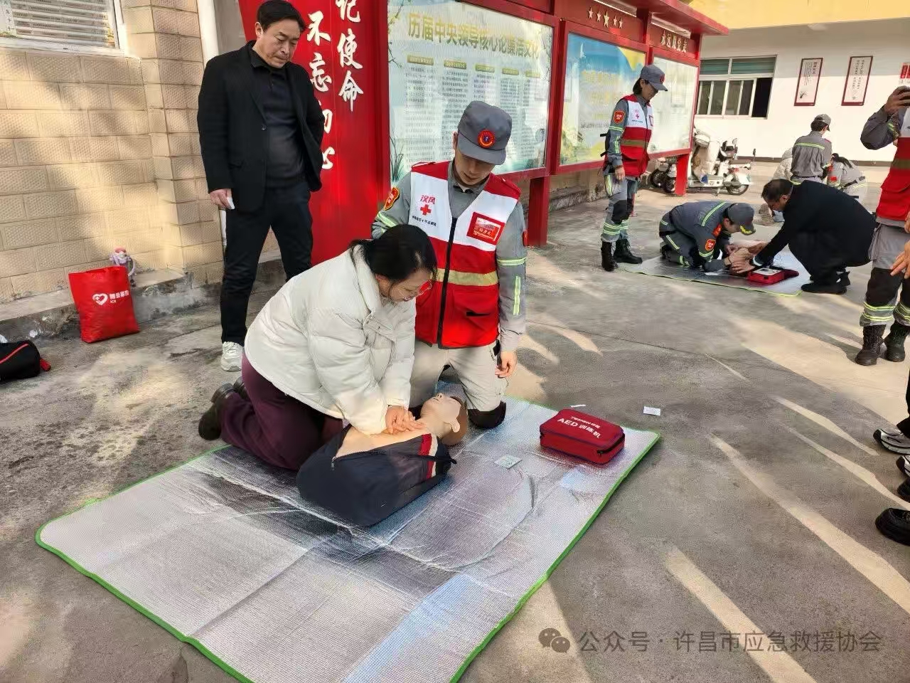 为让大家真正学懂会用,培训采取理论讲解+实操演练+情景模拟相结合的方式,沉浸式强化技能掌握。志愿者们利用模拟人教具现场示范,手把手纠正动作细节;参训人员分组上阵,反复练习按压深度、频率、手法,逐一过关。情景模拟环节还原突发险情,大家快速响应、规范操作,把知识转化为实战能力。