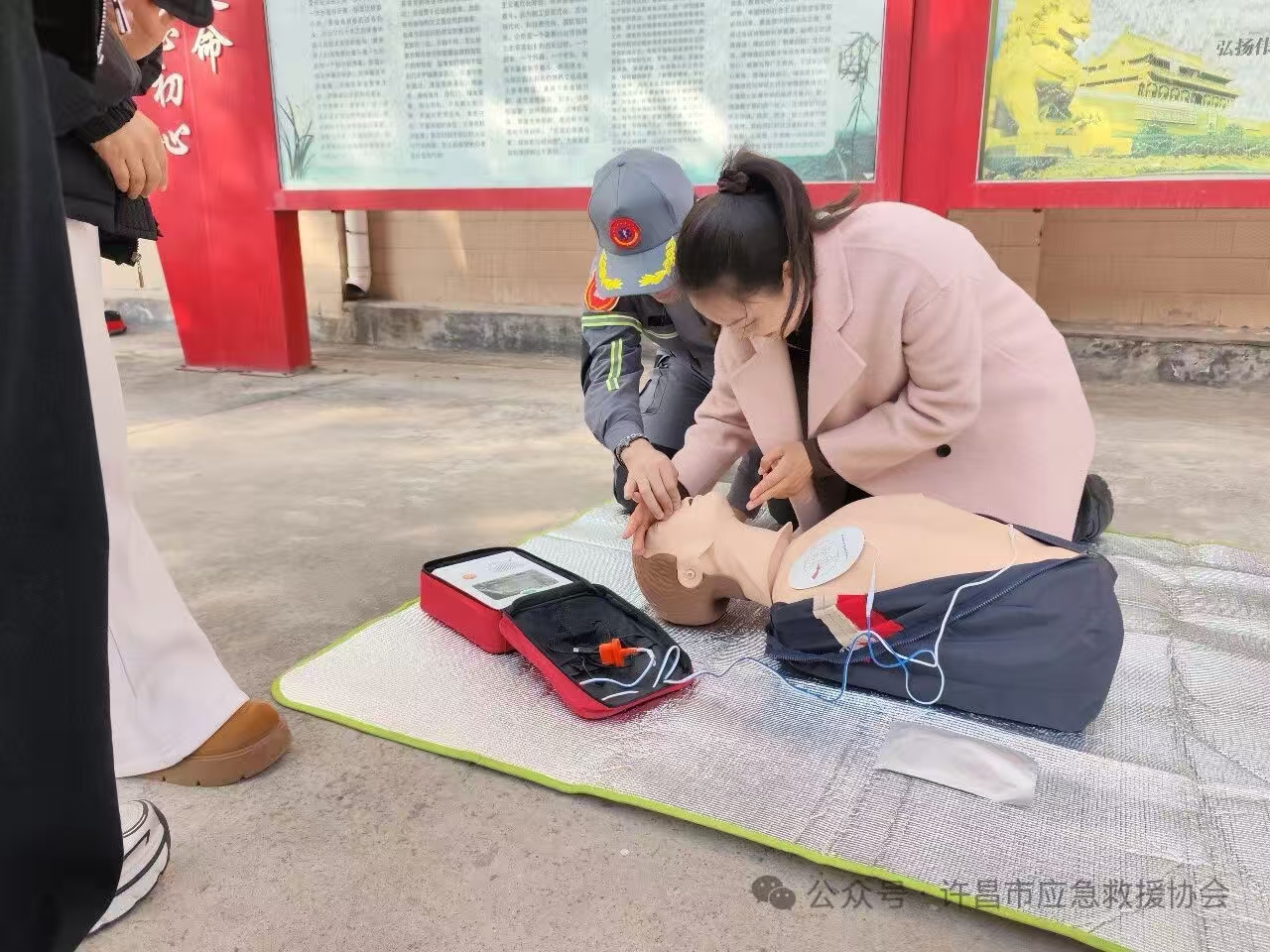 活动现场,志愿者以“黄金4分钟”急救理念为切入点,结合真实案例,用通俗易懂的语言,系统讲解应急救护核心知识。课程围绕心肺复苏(CPR)、自动体外除颤器(AED)规范使用、气道异物梗阻急救(海姆立克法)三大关键技能展开,从判断意识、检查呼吸、规范按压、开放气道、人工呼吸,到AED开机、贴电极片、分析心律、放电除颤,每一步都讲清要点、讲透原理。